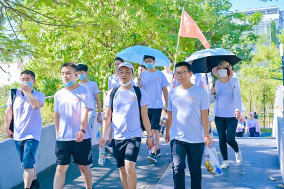時間流逝,轉眼已近晌午,隊伍距離終點目標越來越近,最終,團隊歷時4個小時,行程共計21.9公里,150名隊員無一人落下,全部抵達終點。