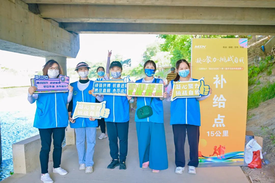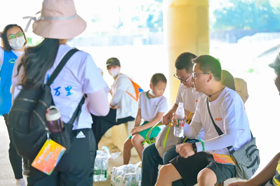 隨著行程的推進,大家體力已消耗過半,持續的行走讓大家的腿已開始發抖,有些小伙伴行進的速度也有了明顯下降,但大家仍然步履不停,在簽到點互相分享食物與水、攙扶起體力較弱的同事,徑直向目的地行進。
