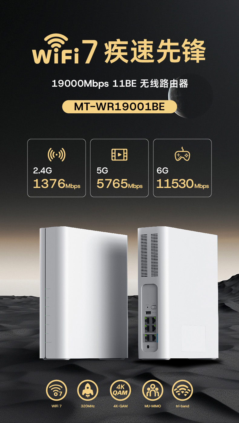 WiFi 7三頻疾速19000Mbps震撼首發!速率與覆蓋雙突破,大戶型也能信號無死角